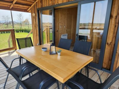 Fiecare casă este modernă, cu două camere, bucătărie completă, living și baie, fiind ideală pentru familii sau grupuri de prieteni de până la 5 persoane. Aproape de apă, fiecare casă oferă o atmosferă deosebită, iar peisajul oferă o senzație de magie totală, unde fiecare clipă petrecută este un moment de relaxare pură.